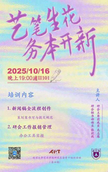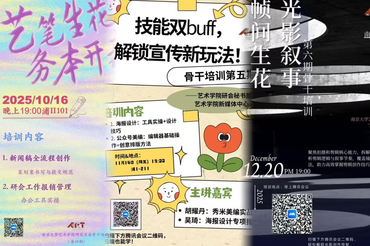 为全面提升研究生会成员的综合素质与宣传实务能力,推动新成员快速融入工作节奏、夯实业务基础、提升艺术素养,娱乐城 研究生会于2025年秋季学期精心策划并组织了三期骨干培训活动。系列活动围绕新时代校园文化传播的核心需求,聚焦新闻写作与综合实务、推文排版与海报设计、拍摄与剪辑三大模块,展开系统而深入的研习,为学院宣传工作注入专业动能与创意活力。
