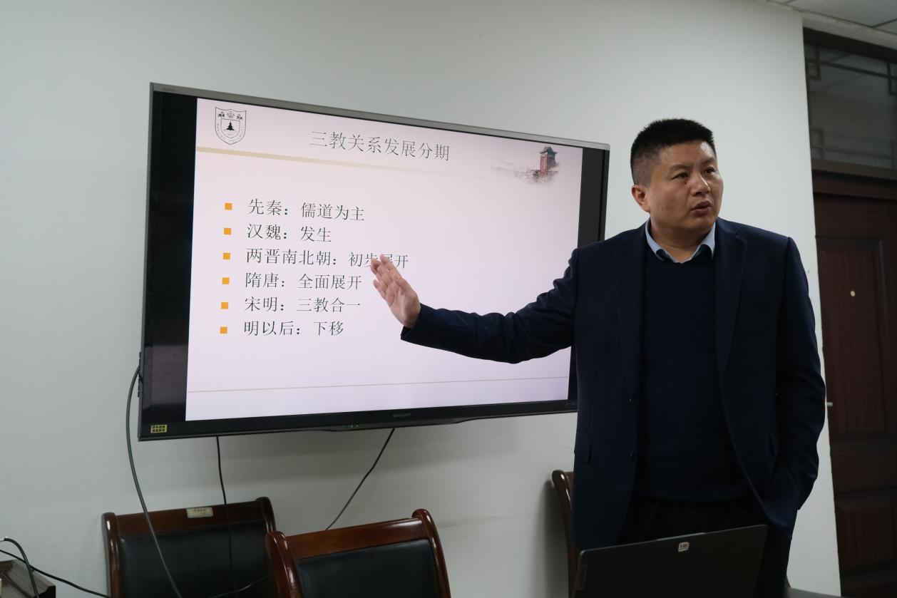 儒、佛、道三教关系的脉络,可追溯至两汉之际佛教传入中国。从佛教角度看,三教关系的演进史也正是佛教中国化的过程。胡老师特别强调,三教关系并非始终表现为三方的同时互动;即便在某些历史阶段主要表现为其中两教的交流与碰撞,仍属于三教关系的范畴。例如,先秦时期儒、道两家的思想互动,便可视为三教关系的重要组成部分。